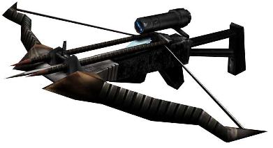 Här har vi en armborst som kan skjuta gift pilar, pilar som sprängs och vanliga pilar.